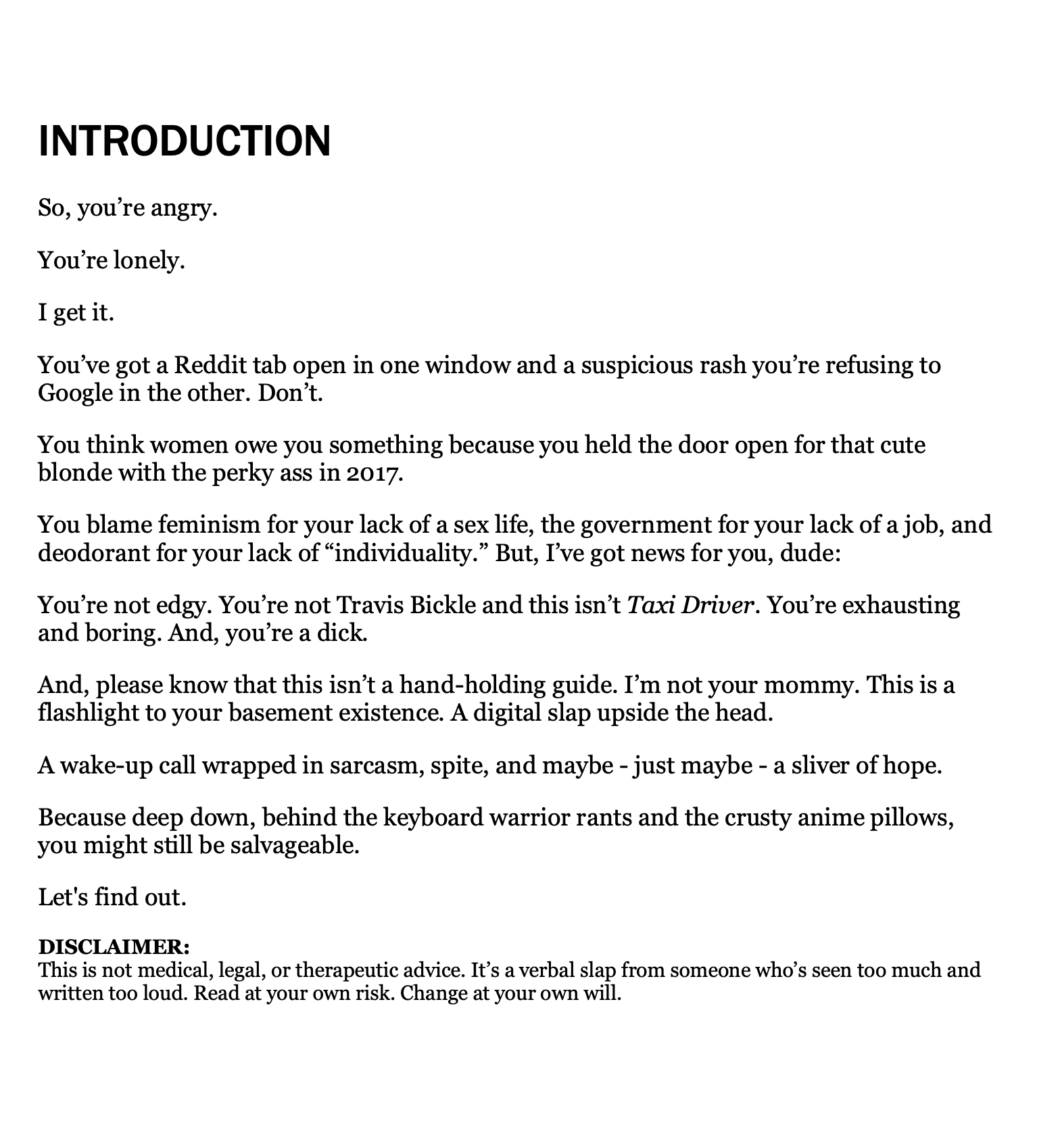 | Tags | blackpill, Dark Humor, incel, Mental Health, printable, redpill, satire, self-help, tough-love, zine |
